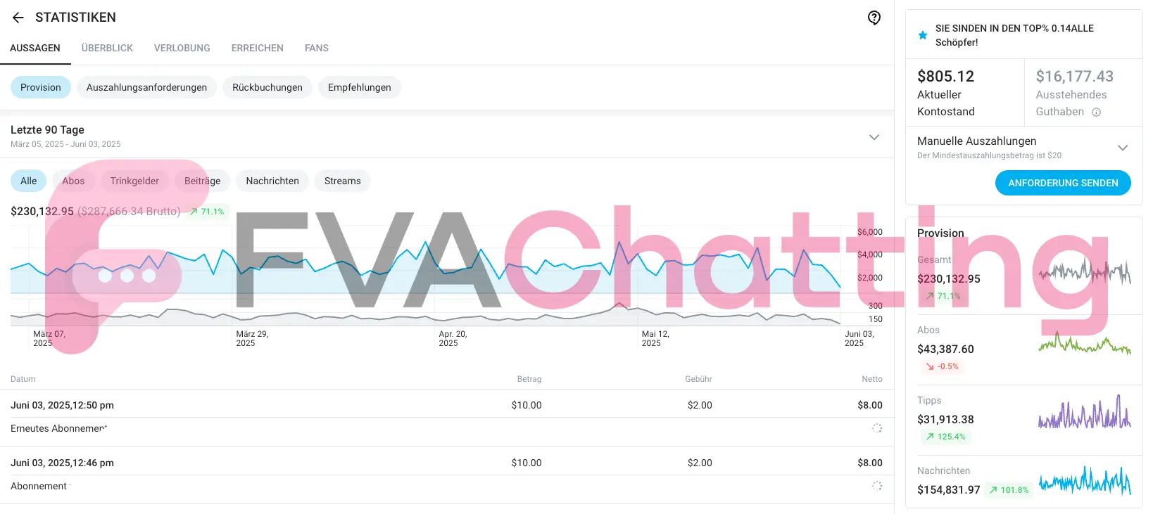 Subscriber Revenue: $6.6K Tips: $9.5K PPVs: $106K+ Level up through FVAChatting.